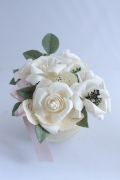 真っ白なシンプルなコンポートに大輪のプリザーブドフラワーをアレンジ。インテリアを選ばない定番の人気ギフトです。(20×20×30㎝)